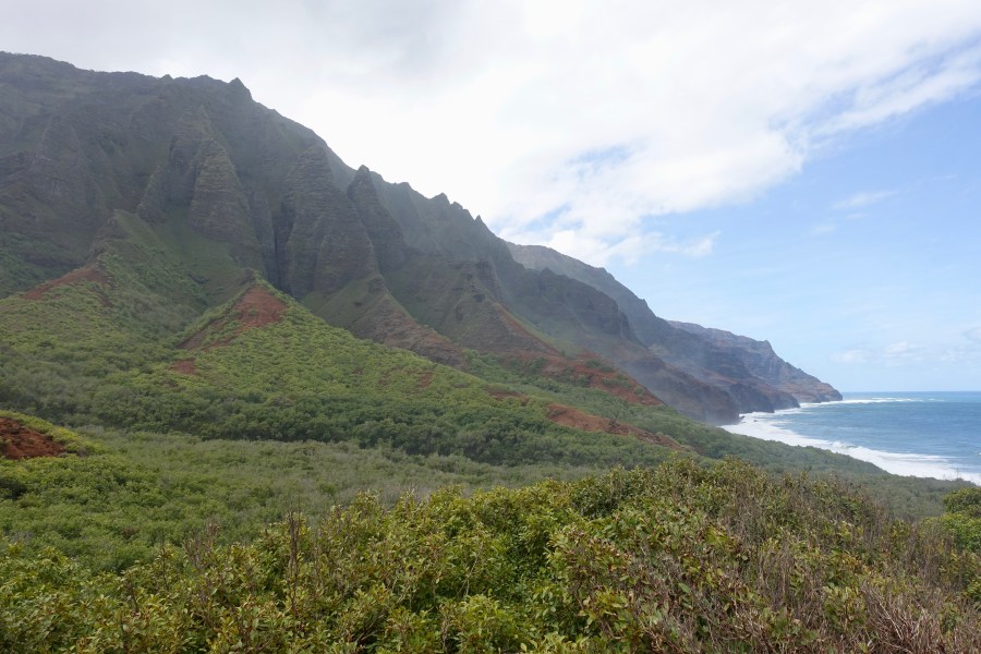 The Kalalau Trail on the Napali coast on the island of Kauai is on most hiking and backpacking bucket lists, and is even noted as “one of the world’s most dangerous trails”. Most folks just hike out and back the first two miles to Hanakapai’ai Beach for a highly scenic and fairly reasonable outing, and our family has done that a few times. To go further requires a permit, and most hikers will take 3 or more days to backpack to, and camp at, Kalalau Valley. Having held some fitness from my summer backpacking, I opted to make it a long day hike; 22 miles round trip with about 5,000 feet of elevation gain.