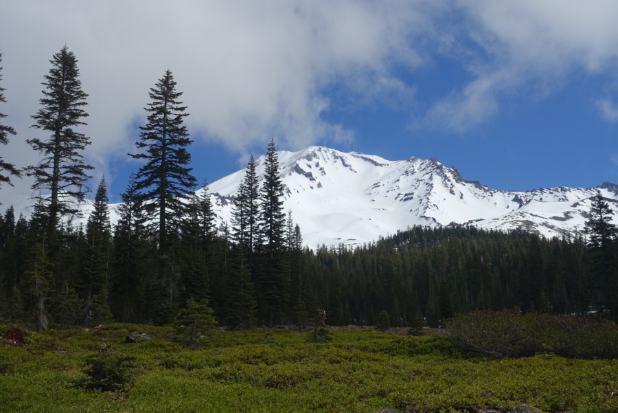 We drove to the town of Mount Shasta on the Friday before where we settled in to the local Best Western and enjoyed dinner and brews at nearby Mount Shasta Brewery. Saturday started early with check-in and gear check at SWS where the road in front of their office headed straight to the mountain. Once settled with gear, and briefings completed, we drove to the trailhead at Bunny Flat at close to 7,000′. Our small group of three clients and two guides struck out late morning to our base camp just below Lake Helen at close to 10,000′ on the Avalanche Gulch route.